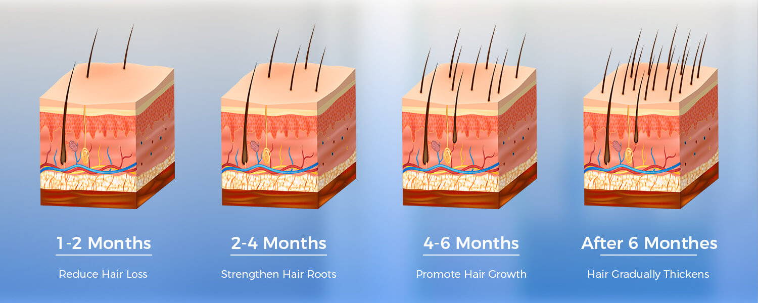 1-2 Monthes to reduce hair loss, 4-6 Monthes to renew your hair.