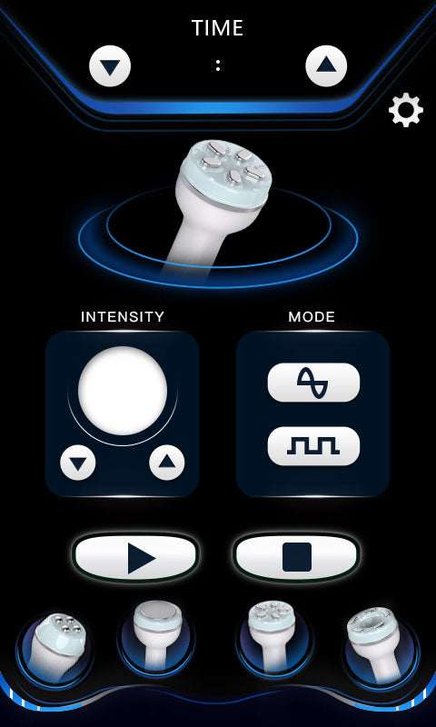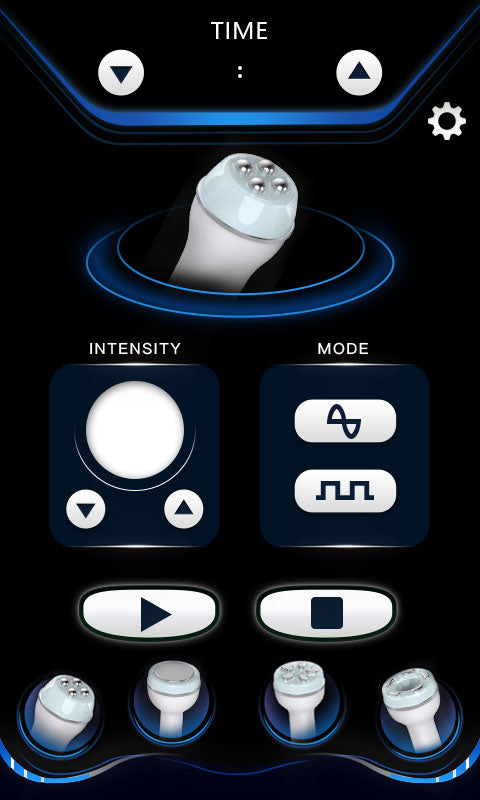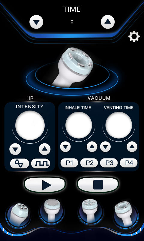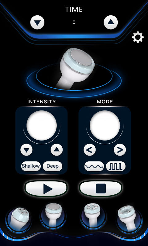 After applying gel and properly connecting the device, select the current treatment Handpiece at the bottom of the page.